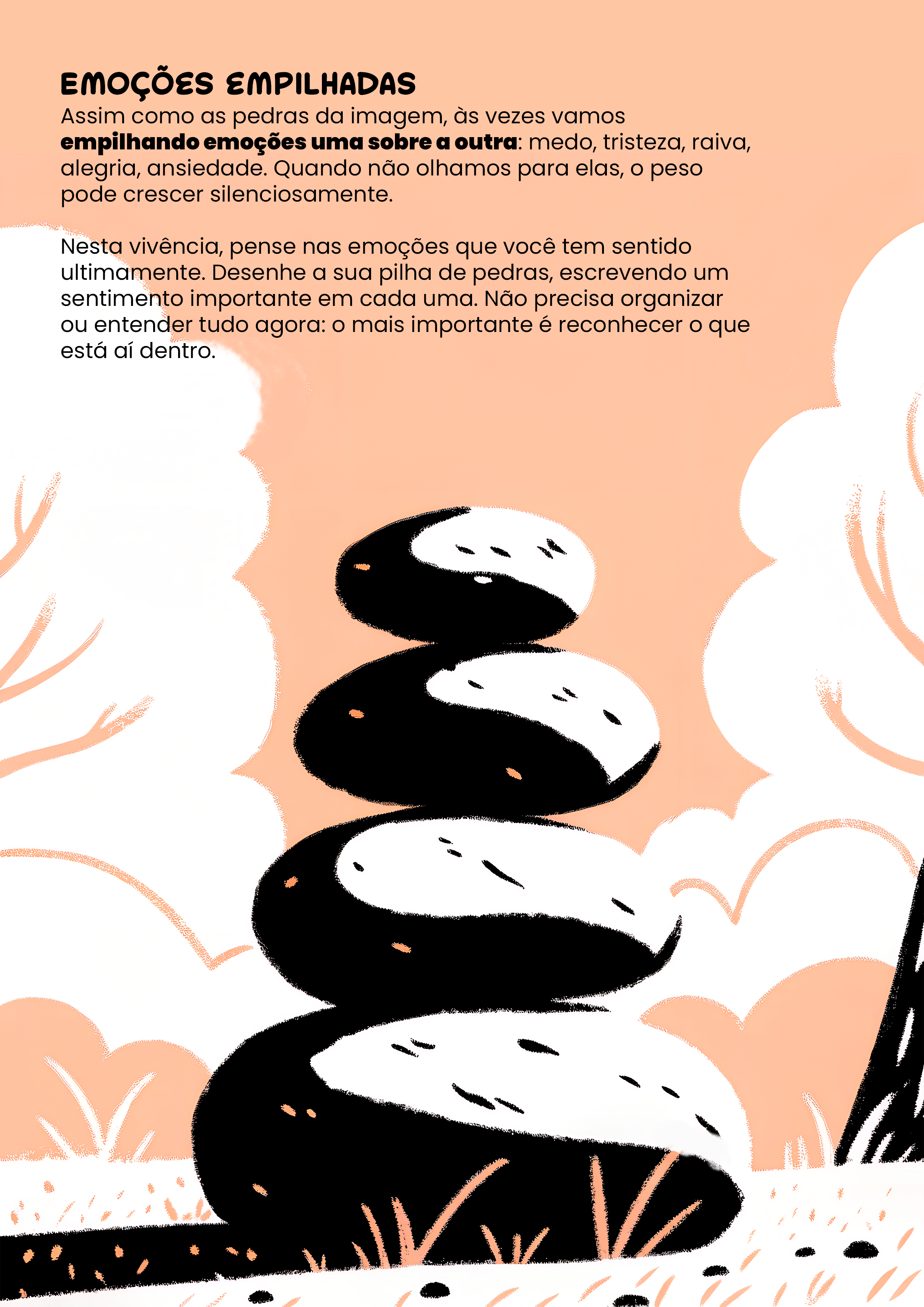 Cada atividade convida você a acessar suas emoções, liberar o que está preso e se reconectar com quem você é.
