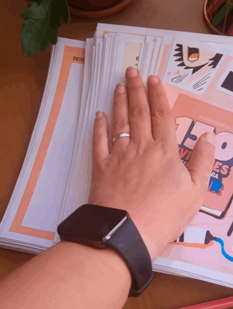 O guia foi pensado exatamente para quem procura arteterapia para imprimir. Todas as atividades estão organizadas em um PDF que pode ser:
